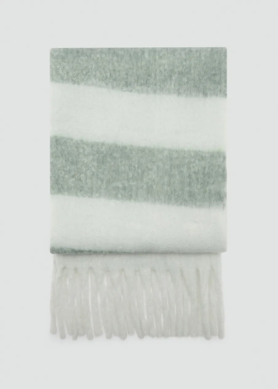 OpisDzianina. Wzór w paski. Dekoracyjne frędzle.