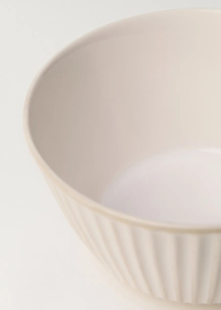 Średnica: 15 cm. Wysokość: 8 cm. 100% kamionka. Naczynie na żywność. Można wypełnić płynami. Sprzedaż na sztuki. Połącz z innymi produktami z kolekcji. Idealny wybór, aby dodać świeżości i elegancji do nakrycia stołu. Łączy rustykalne wzornictwo z elegancką teksturą.